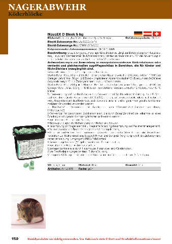Beschreibung: Spezieller gebrauchsfertiger Blockköder (ca. 20 g) zur Bekämpfung von Hausmäu-
