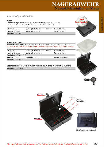 Beschreibung: Stabile Mäuseköderstation, flache Bauweise, mit Schlüssel, ohne Prägung.
